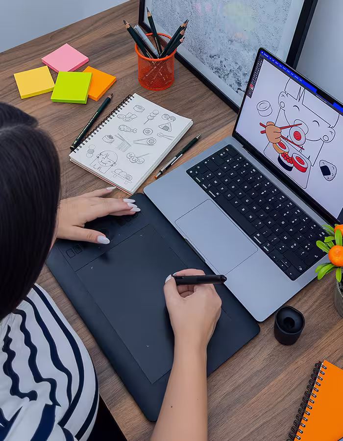 We developed a bold yet simple logo merging chopsticks with the initials "T" and "K," accompanied by the iconic red circle from Japan's flag. We chose vibrant, energetic colors and playful illustrations of characters enjoying sushi and ramen, bringing Tokyo Kitchen’s identity to life across menus, billboards, and business cards.